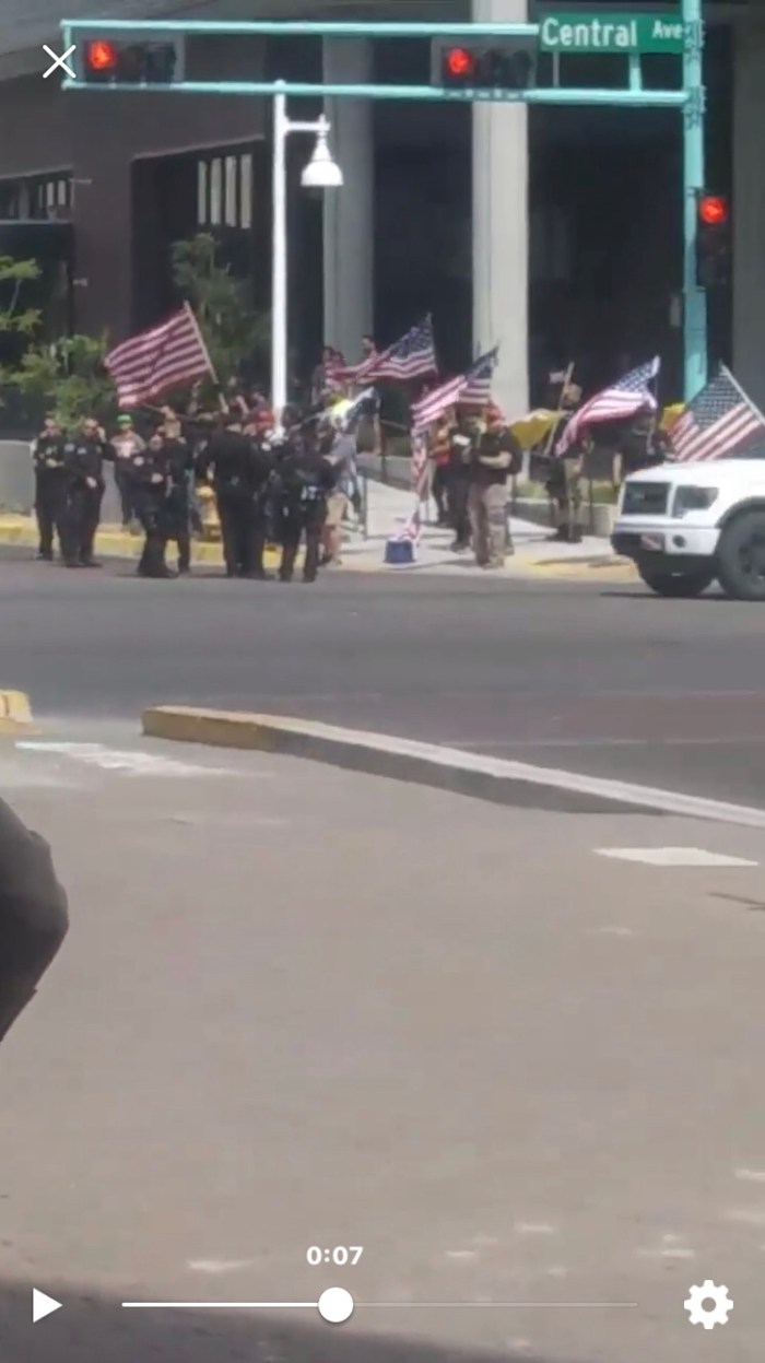 Trump supporter “proud boys” out numbered by anti-trump protesters in downtown Albuquerque.Some say in the Cowboys just want to schedule an event and police protection just to incite violence.